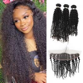 Elesis Virgin hair top grade raw brazilian hair Jerry Curly 3bundles with 13x4 preplucked frontal swiss lace / HD Lace